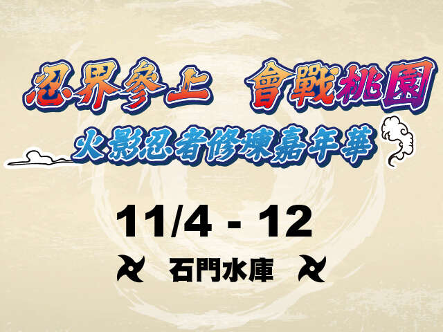 - 桃園動漫路跑嘉年華11月石門水庫旅遊推廣以城市行銷及運動行銷為主軸,結合動畫播映迎接20週年的知名動漫作品「火影忍者」,打造國際性、話題性之專屬城市路跑嘉年華,點燃城市亮點,行銷城市觀光。透過在地合作與遊程串聯,行銷桃園大龍門旅遊廊帶觀光,以「大」溪、「龍」潭及石「門」水庫等三處桃園重要觀光景區,注入新的旅遊機會,營造適合全齡共遊的旅遊熱區。