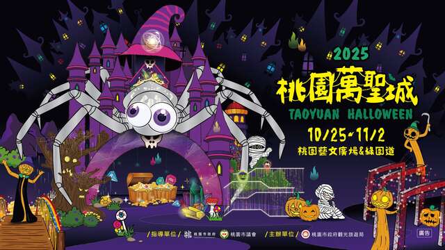 - 桃園萬聖節11月桃園萬聖城將特色節慶活動結合桃園青埔周邊觀光景點,打造桃園城市觀光品牌並帶動周邊觀光商機,活動主視覺打破以往印象,以邪惡無害、恐怖可愛重新定義「崩壞」風格,帶大家走進桃園萬聖城的驚奇世界