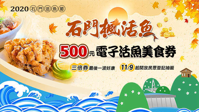 - 石門水庫活魚節10月-11月在一年一度的石門活魚節裡,不僅可以吃到各店家的招牌菜,也有結合一些趣味性的小旅行、店家優惠、美食投票或抽獎等活動,等著旅人們前來參加體驗石門活魚的魅力!