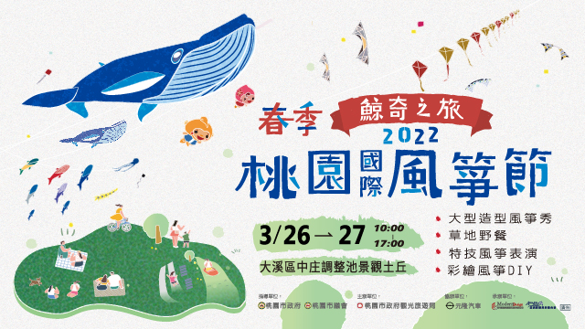 - 桃園國際風箏節10月-11月北台灣放風箏的新據點就在桃園,包括童話風箏秀、風箏空中劇場、風箏裝置藝術、特技風箏以及各式造型風箏...等精彩表演,融合景觀池、大草坪、景觀平台等水文景觀,為秋天的大溪營造了最動人美麗的畫面,適合闔家同遊、一同度過歡樂假日