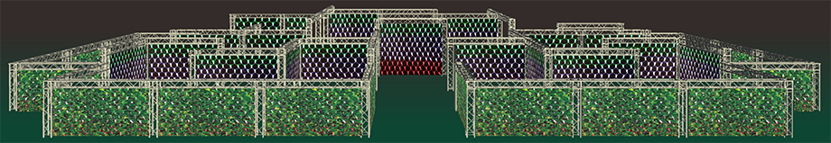 外觀由垂藤燈飾環繞的光之迷宮,夜色中成為了一面閃閃發光的植生牆,遊走在迷宮內,大量的LED燈飾讓人彷彿置身於萬花筒燈海一般,令人眼花撩亂,要好好把握住方向感努力闖關,小心不要迷失在絢爛的夜色中!