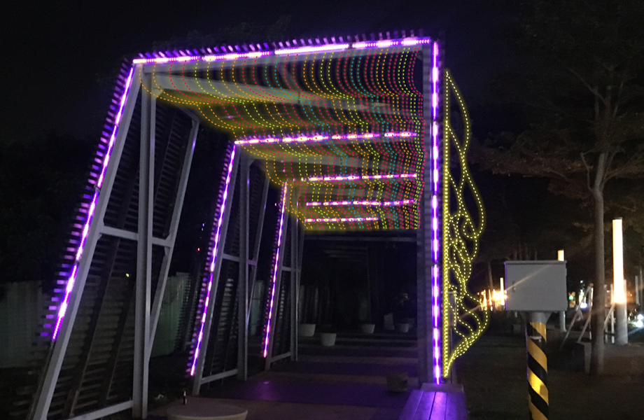 將時尚簡約的迴廊造型,增添色彩斑斕的天幕燈飾,搭配音樂旋律營造氛圍,任何角度都是最佳視角,成為另人流連的迷幻夢境。
