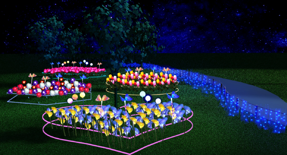 海芋、鬱金香、百合花、菊花、牡丹花、康乃馨、麥穗、蝴蝶燈、蘆葦等各式各樣不同花朵植物,一起打造光之花園,不論是白天或是夜晚都可以來此當網美,感受一下人比花嬌的魅力。