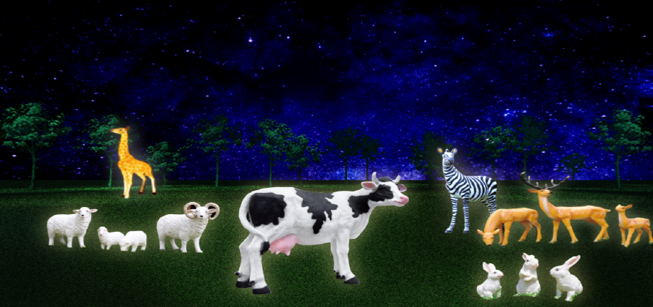 可愛的長頸鹿、斑馬、綿羊就在老街溪河岸公園的綠蔭草地上和你Say Hello!不管白天或晚上,邀請大家一起來和可愛的動物合照,感受城市中沒有圍籬的快樂「光之動物園」。