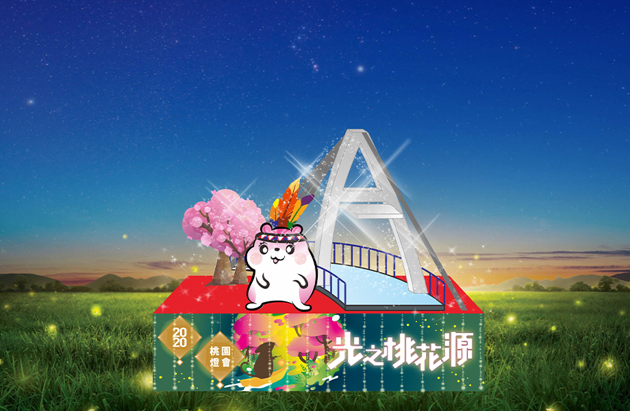 小烏來的地標-天空步道,是全台第一個透明玻璃地板的懸空式景觀步道,搭配穿著原住民服飾的小倉鼠,展現了桃園小烏來的原民特色,也呼應了鼠年的傳統花燈意象!